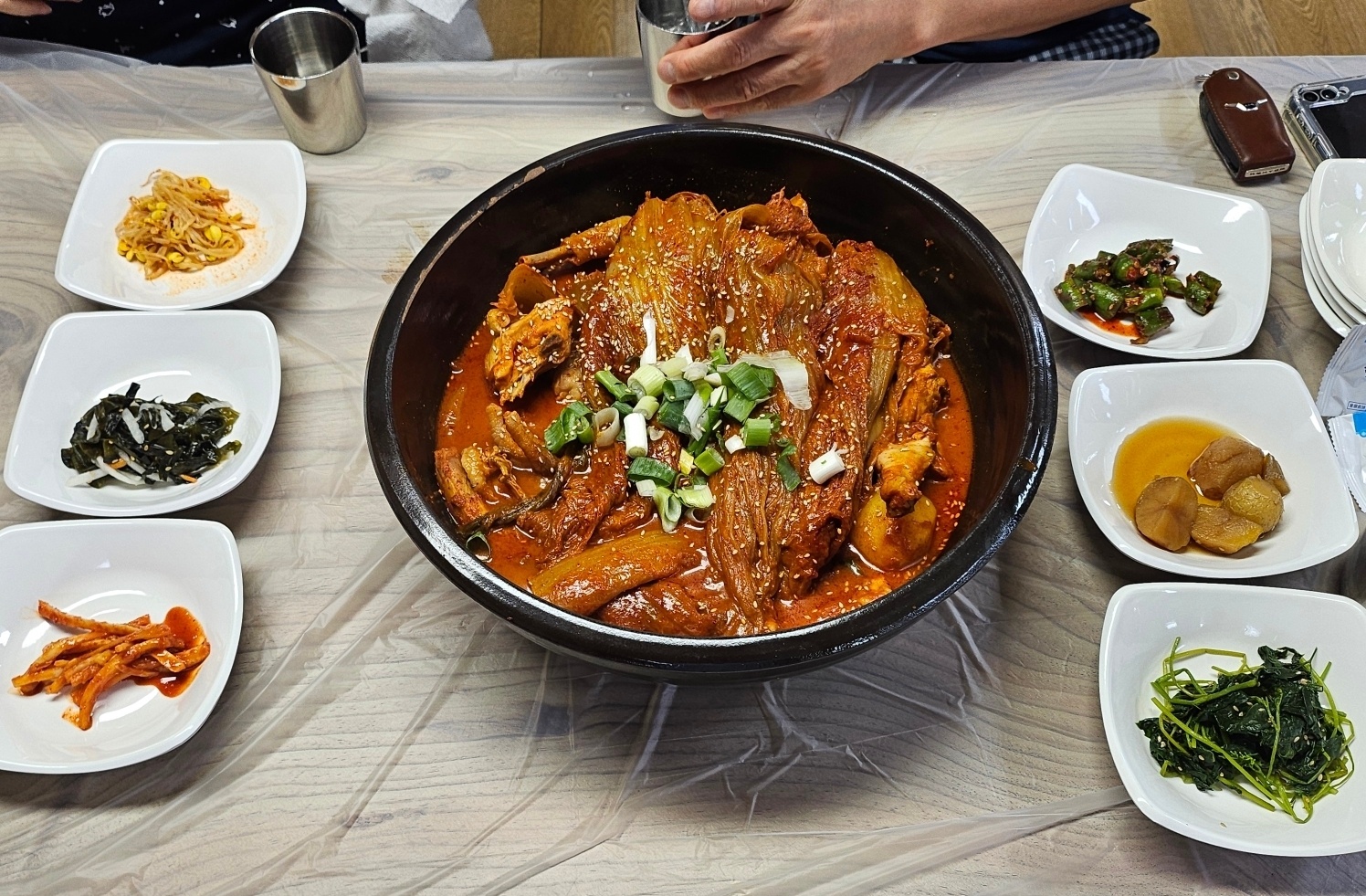 묵은지 특유의 깊은 감칠맛이 양념에 아주 잘 배어있었고, 반찬 구성은 소박하지만 정갈하게 6종이 나왔습니다. (남편은 반찬으로 나온 참나물에 완전 반했습니다.ㅎㅎ)