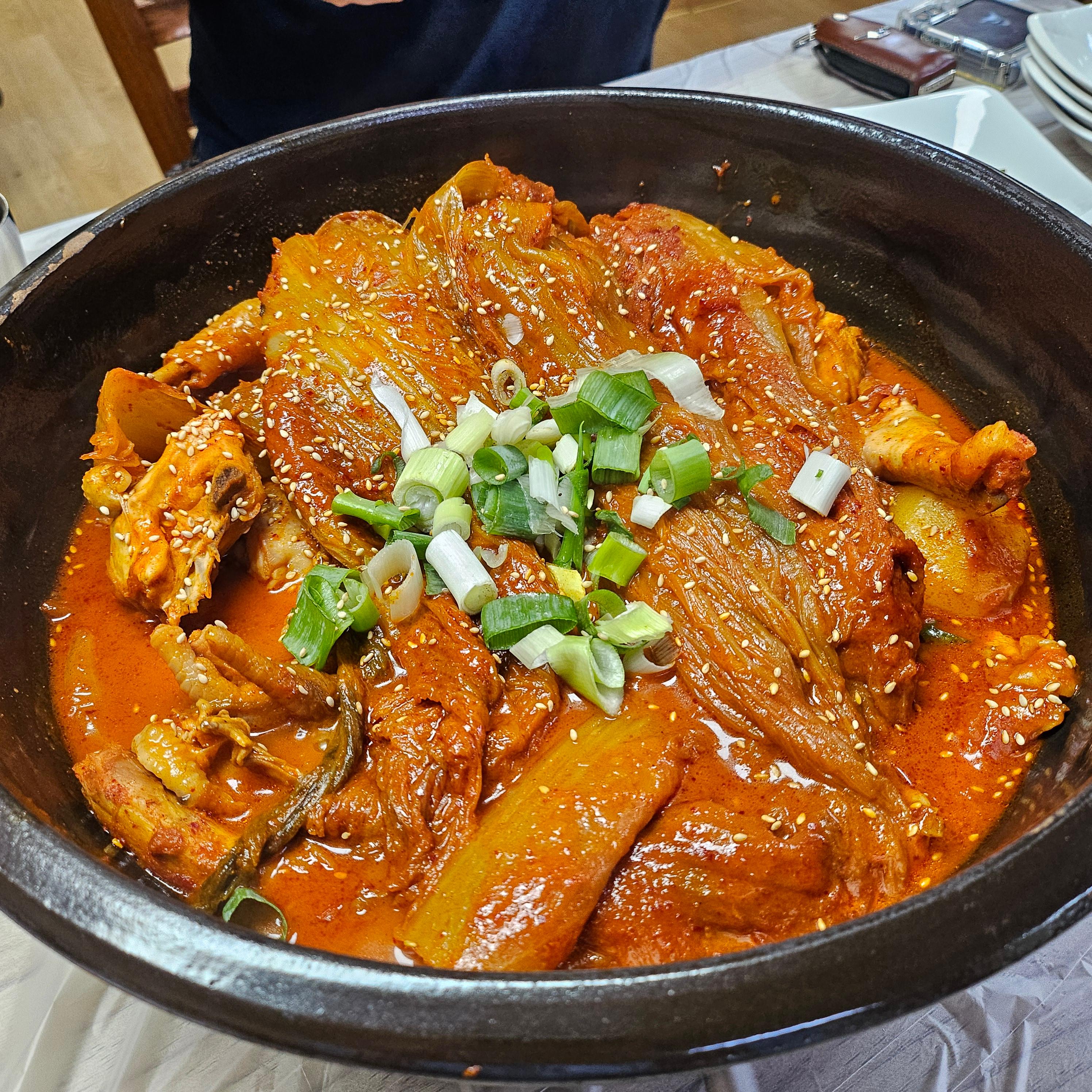 저희가 주문한 메뉴는 김치닭볶음탕입니다. 시부모님께서 미리 예약해주신 덕분에 자리에 앉자마자 바로 상차림을 해주셨습니다.