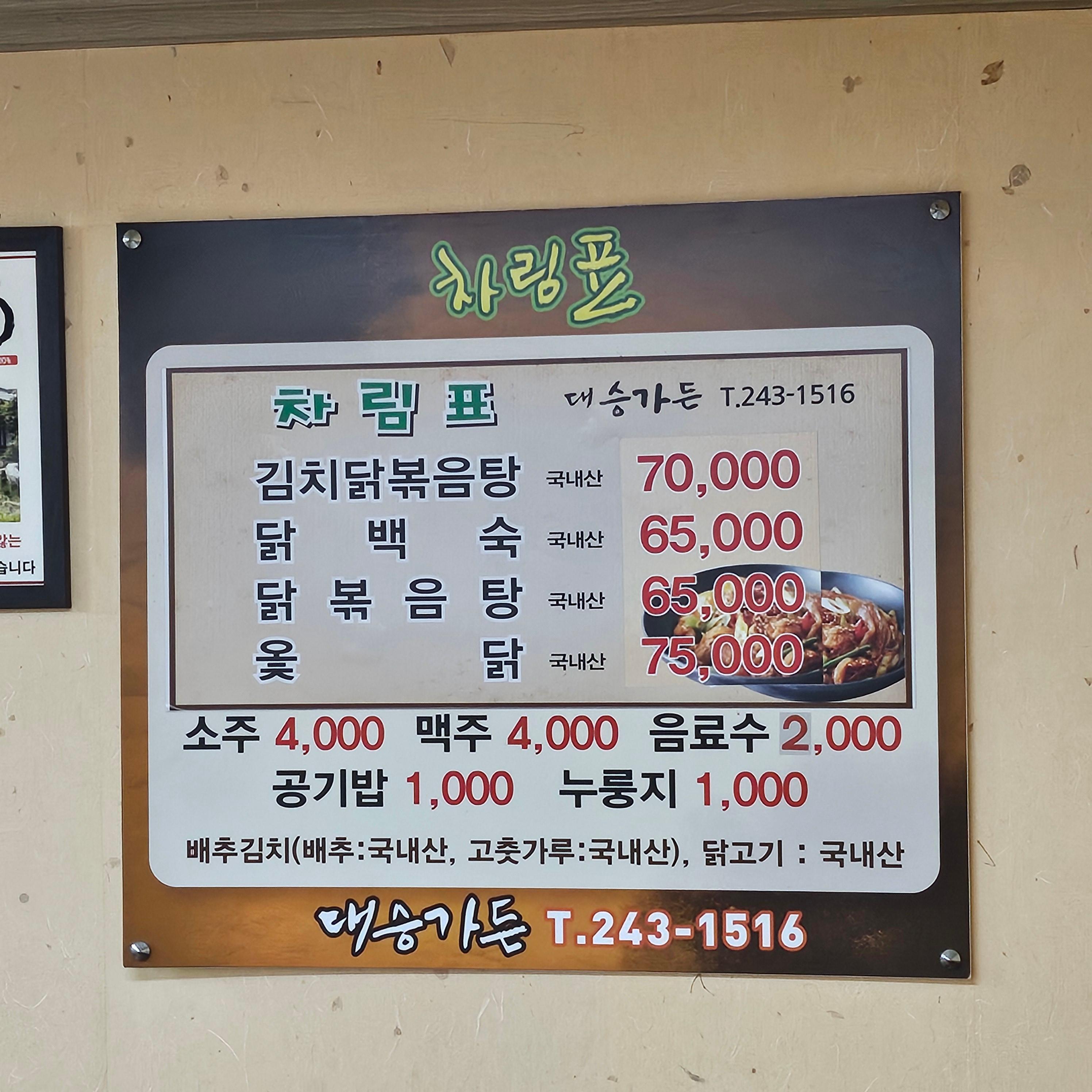 대승가든은 닭요리 전문점이기 때문에 닭볶음탕, 닭백숙 등 닭요리만 특화하여 판매하고 있고, ‘토종닭 1마리 단위’로 제공됩니다.