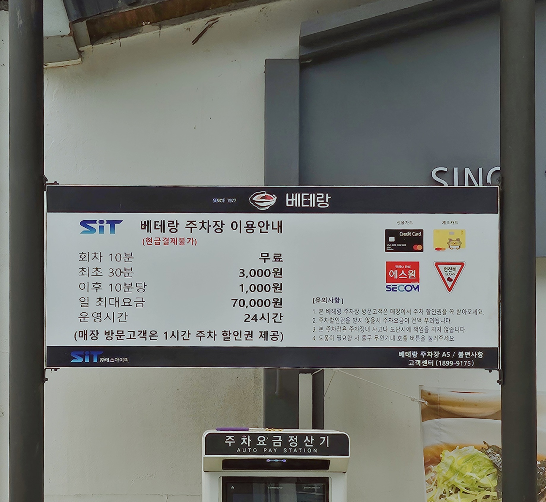 베테랑은 전용 주차장이 있어서 식사 후 계산하실 때 1시간 무료 주차권을 받을 수 있어요.