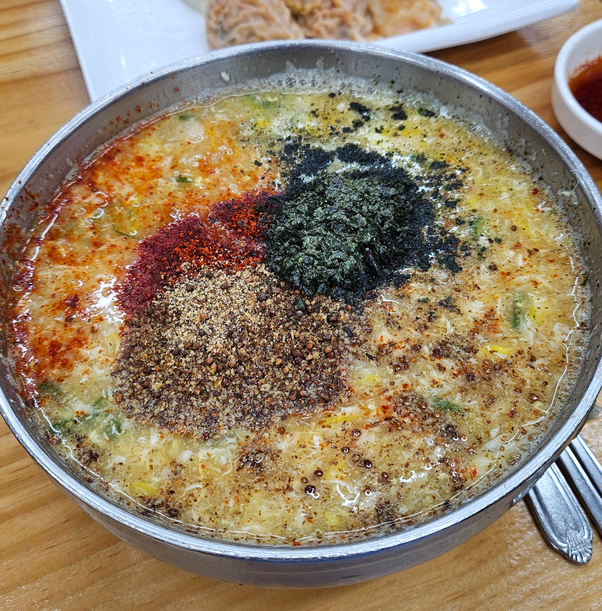 계란이 풀어진 멸치 베이스 육수에 고소한 들깨가루가 솔솔 뿌려져서 첫 숟갈부터 꼬소~하고 눅진한 맛이 아주 진했어요!