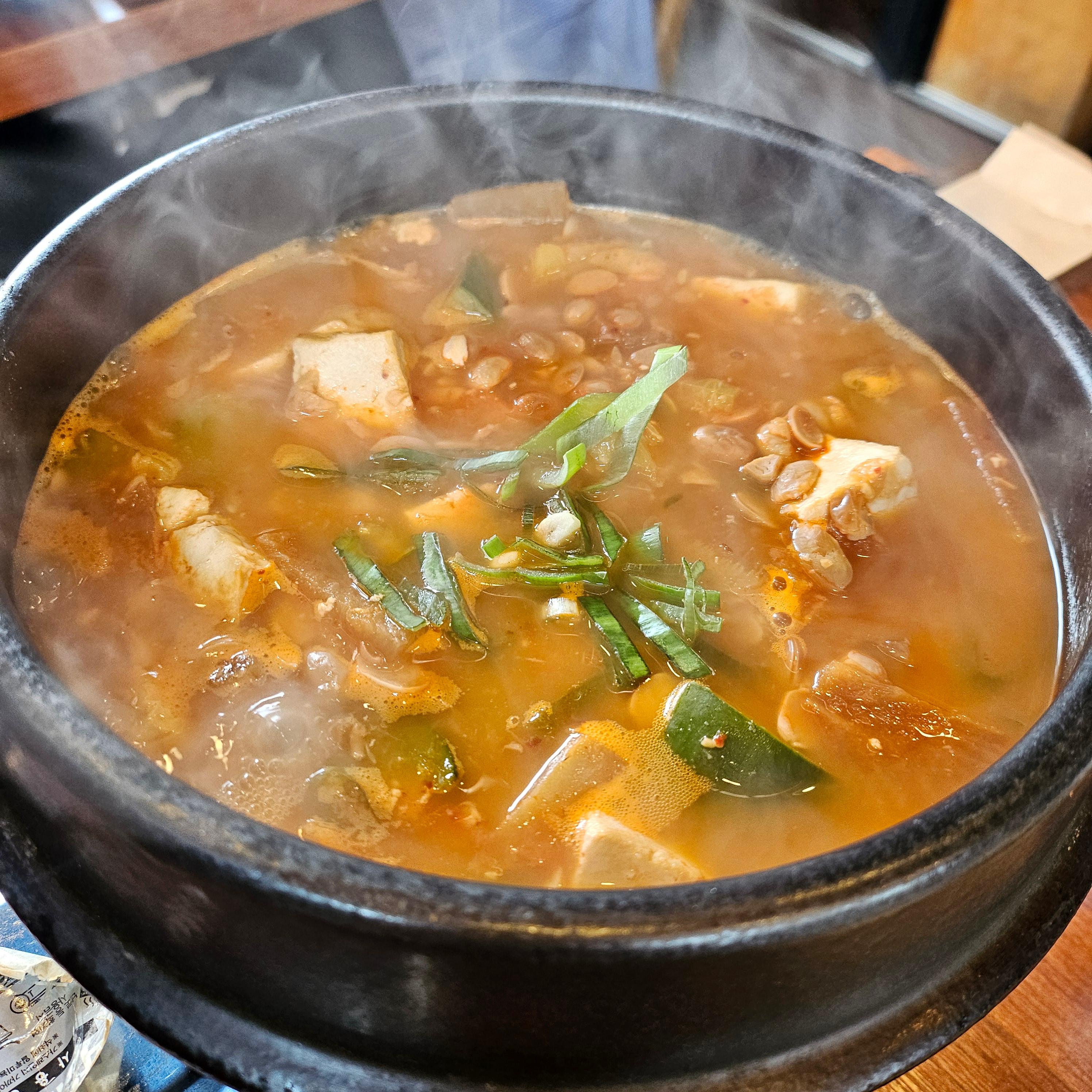 따뜻하게 보글보글 뚝배기째 나오는 청국장은 구수한 향이 제대로였습니다.