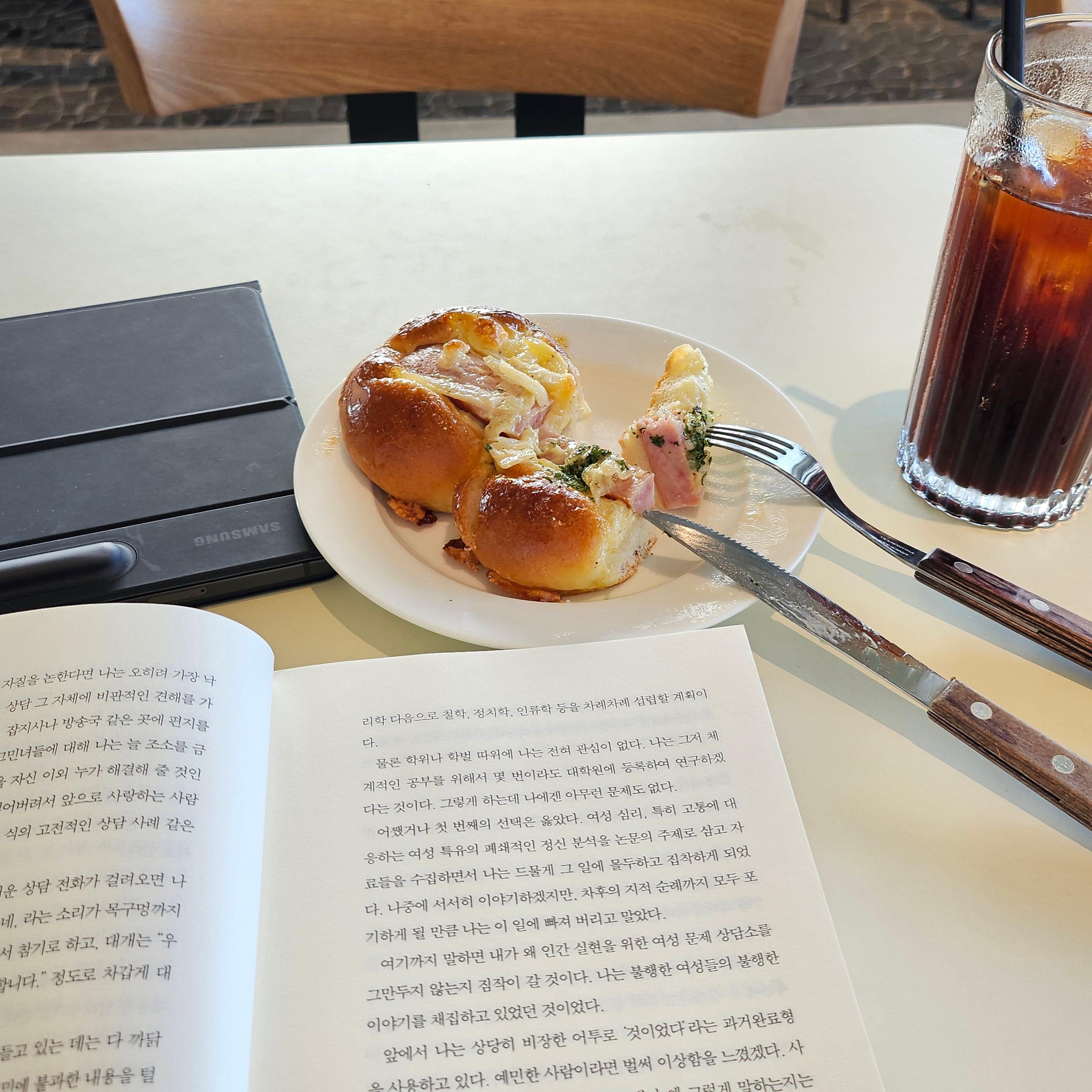 이 날은 책 읽으면서 소시지 빵 하나를 클리어했네요.